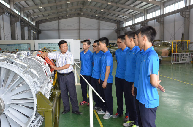 | 경북항공고등학교 학생들이 항공기 엔진교보재로 실습하고 있다. |